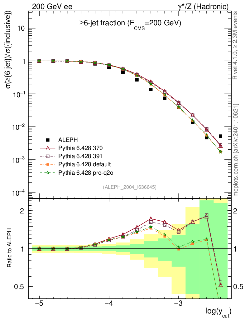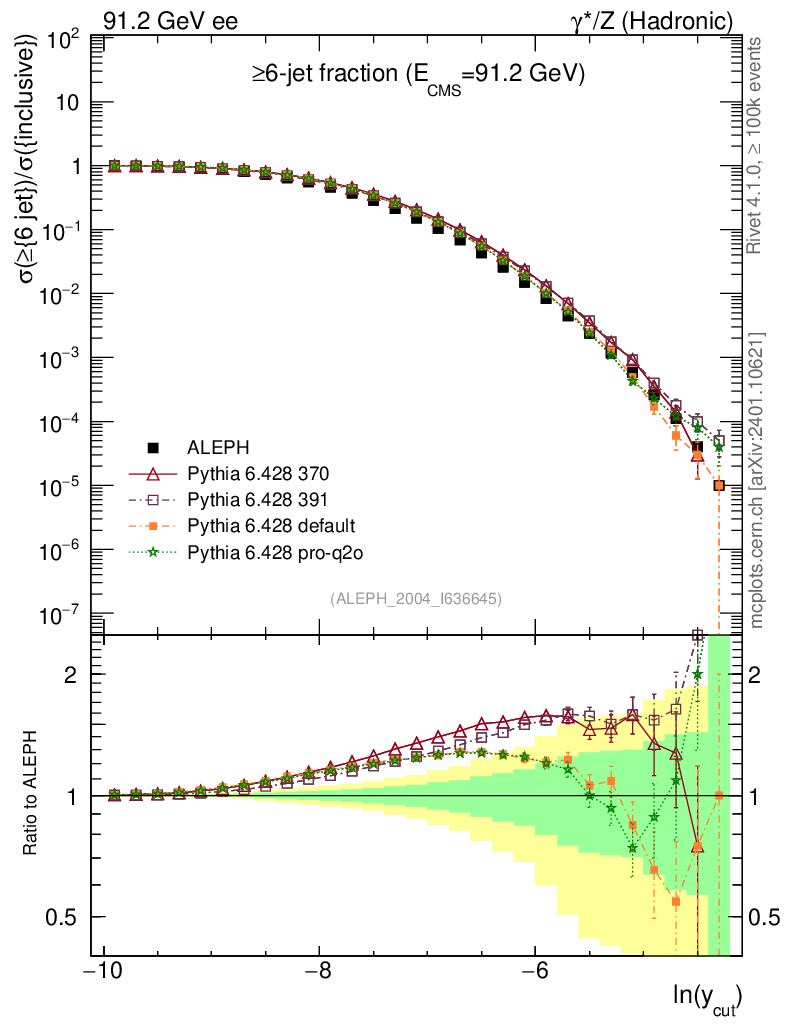 ee : γ*/Z (hadronic) : Jet rates : >Six-jet fraction