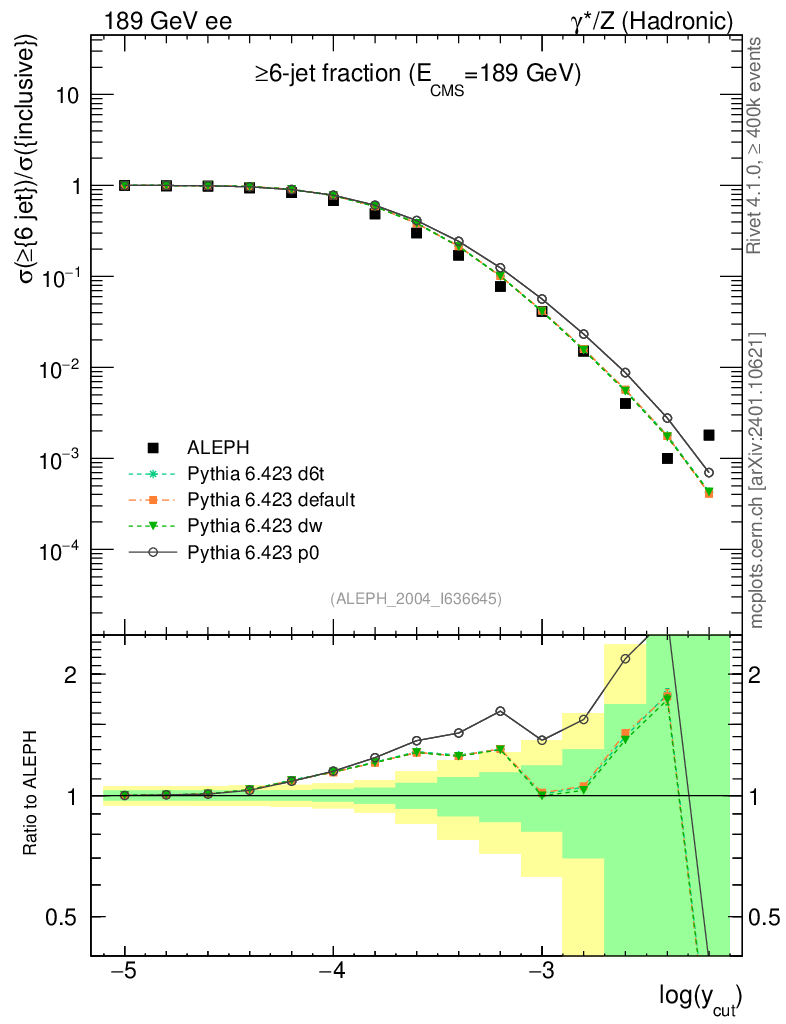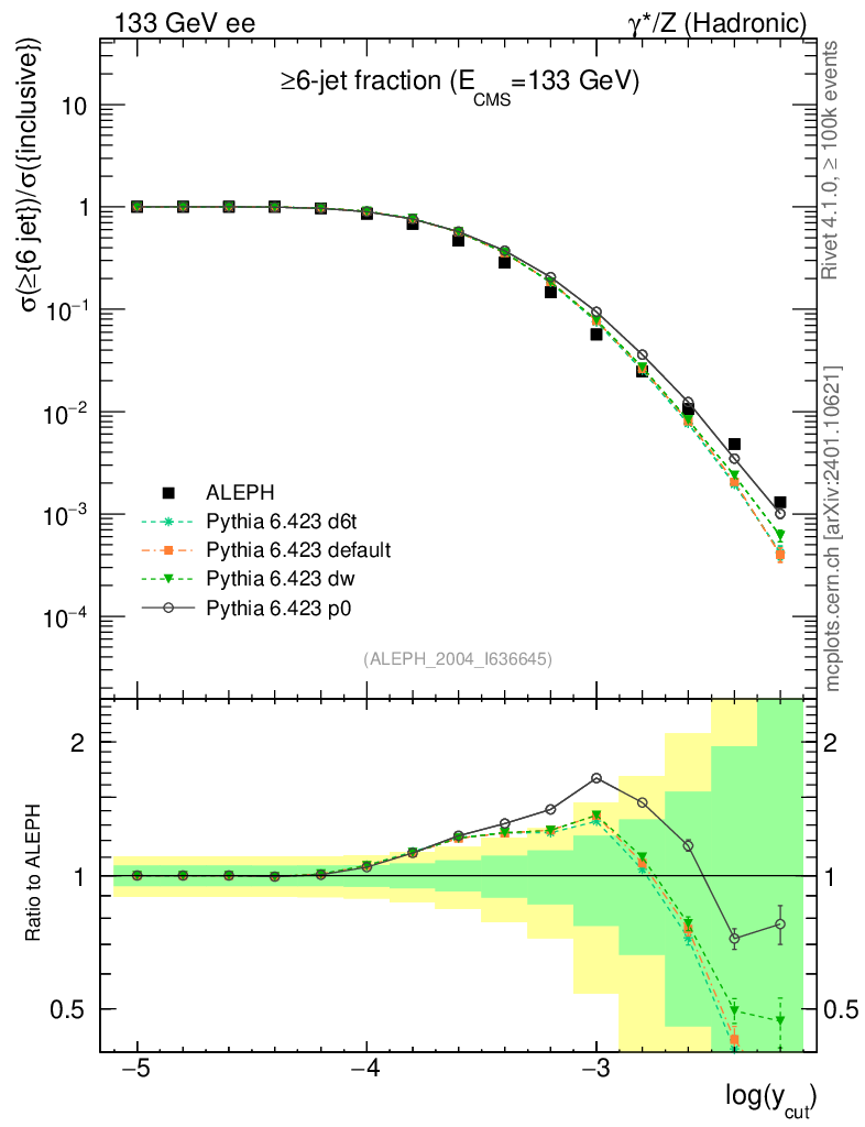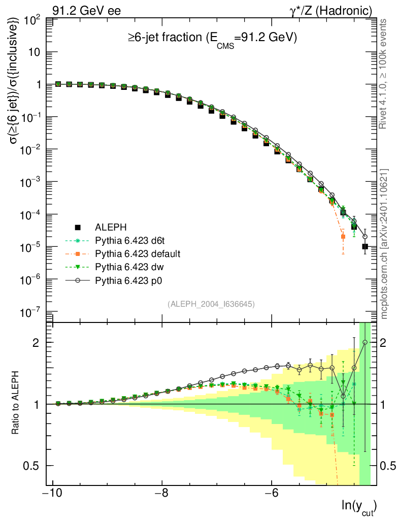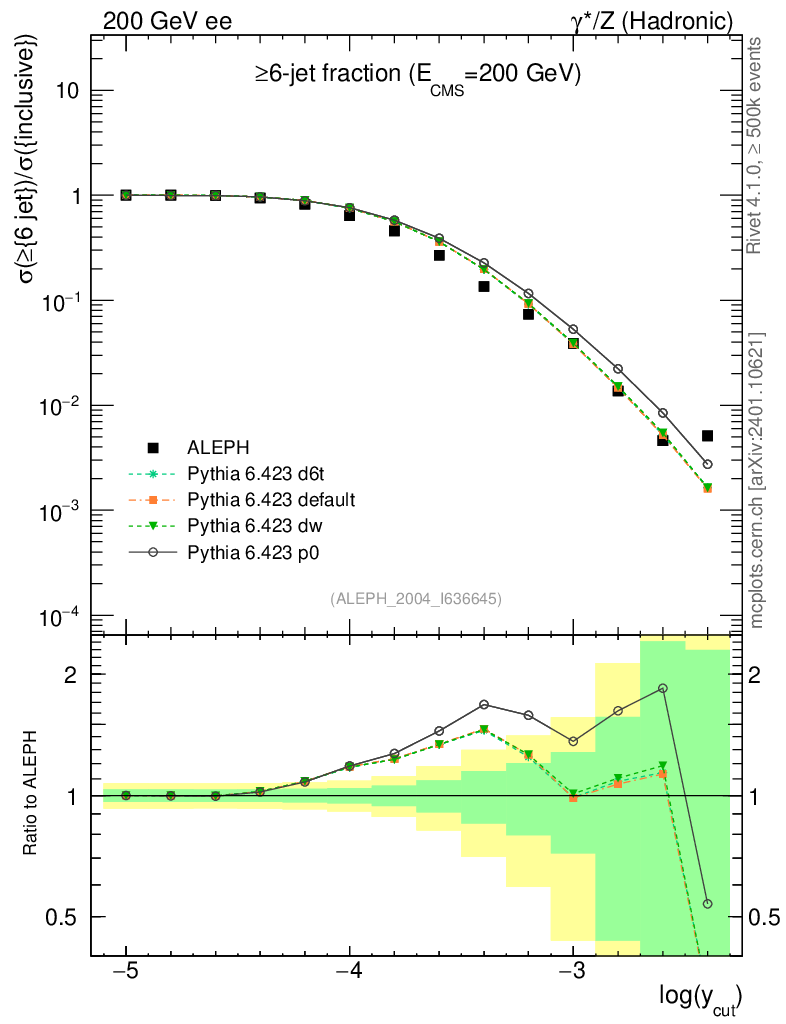 ee : γ*/Z (hadronic) : Jet rates : >Six-jet fraction