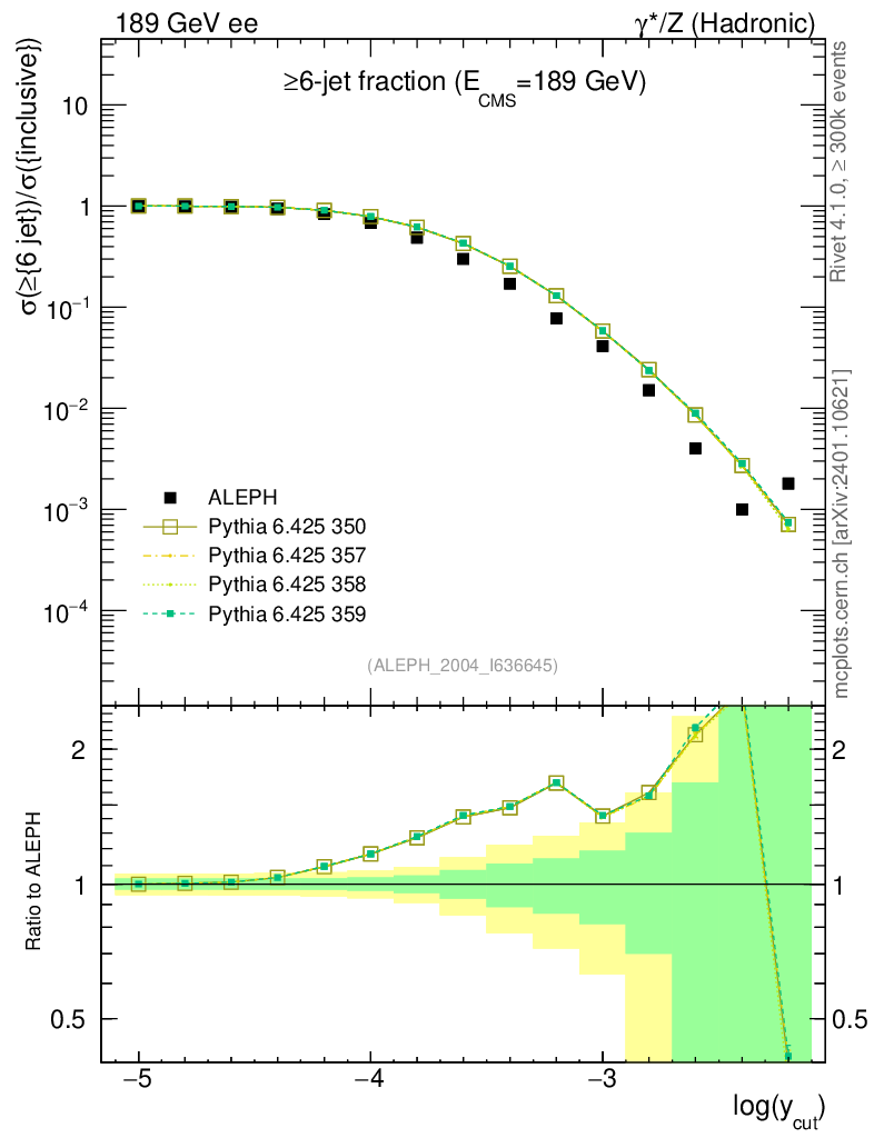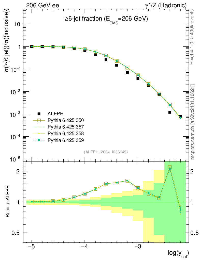 ee : γ*/Z (hadronic) : Jet rates : >Six-jet fraction