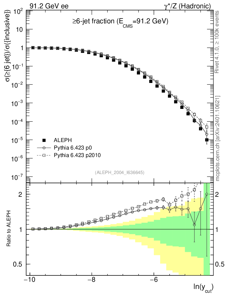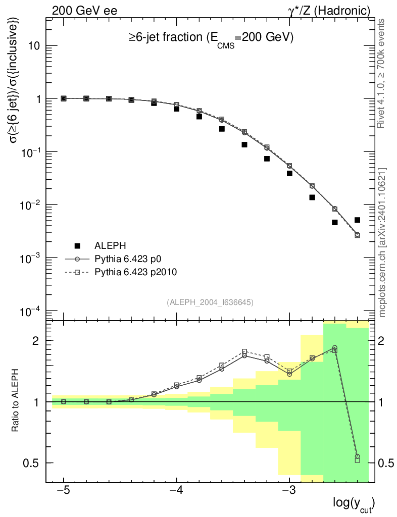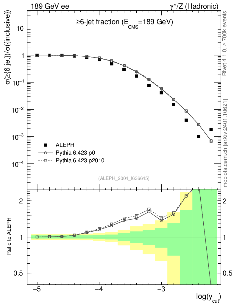 ee : γ*/Z (hadronic) : Jet rates : >Six-jet fraction