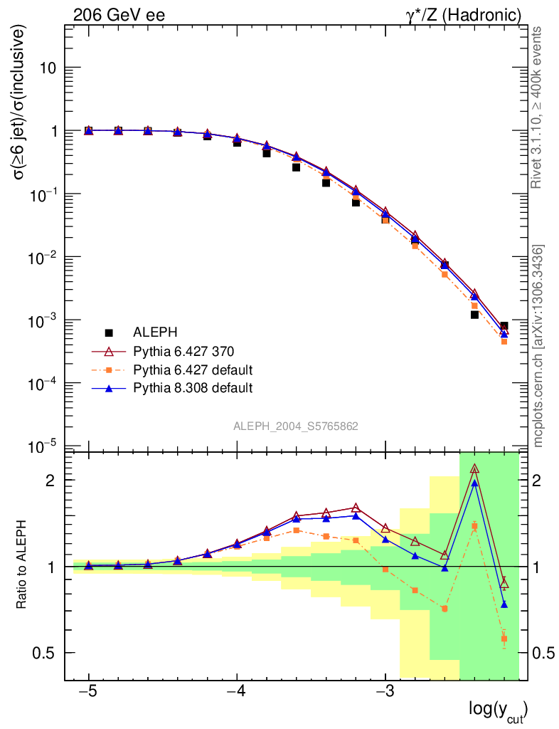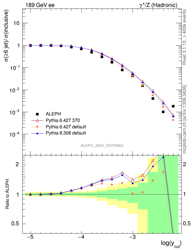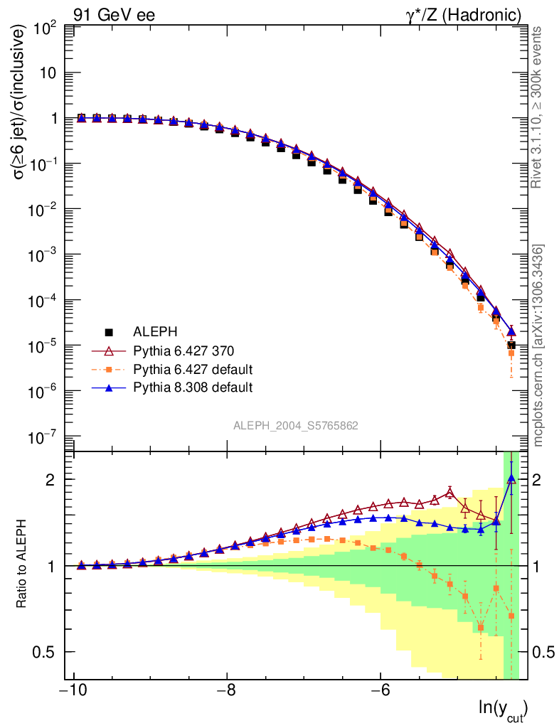 ee : γ*/Z (hadronic) : Jet rates : >Six-jet fraction