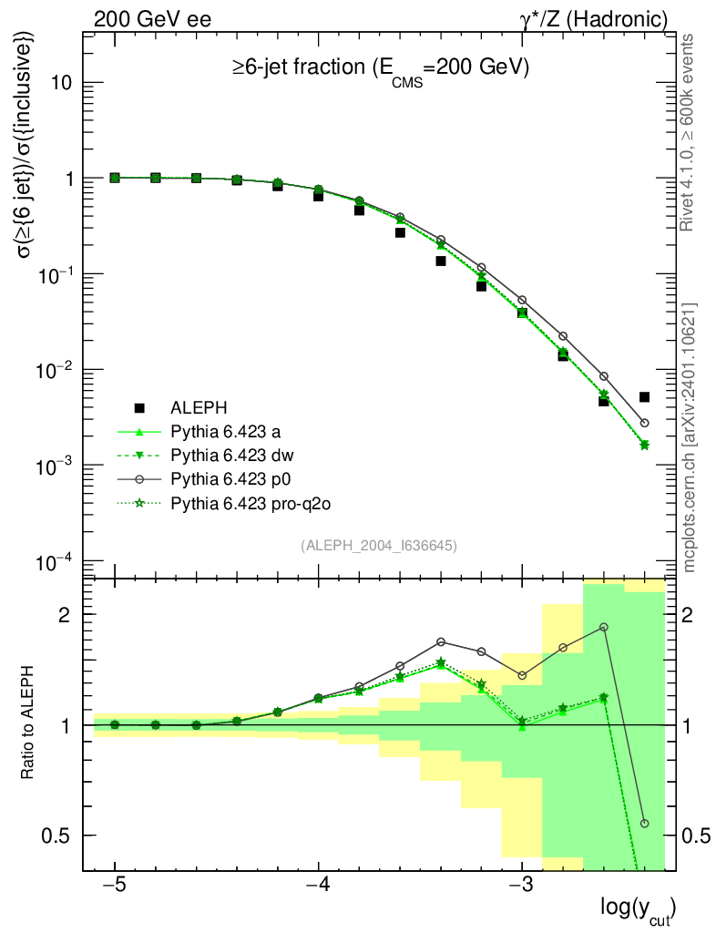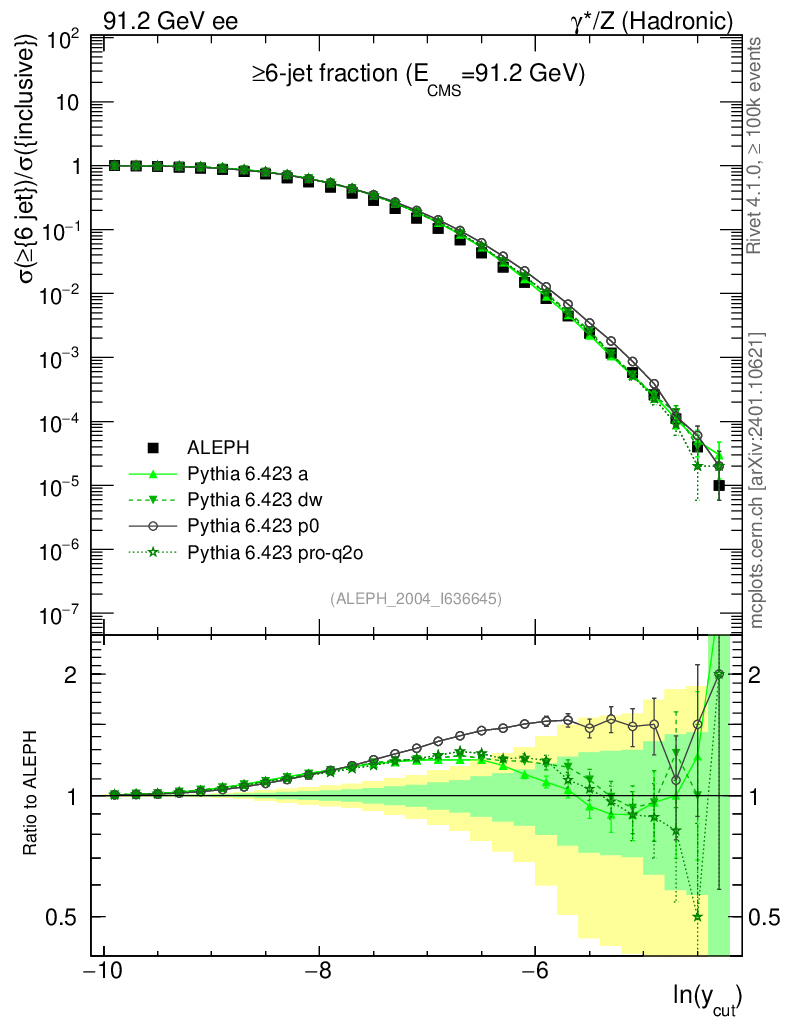 ee : γ*/Z (hadronic) : Jet rates : >Six-jet fraction