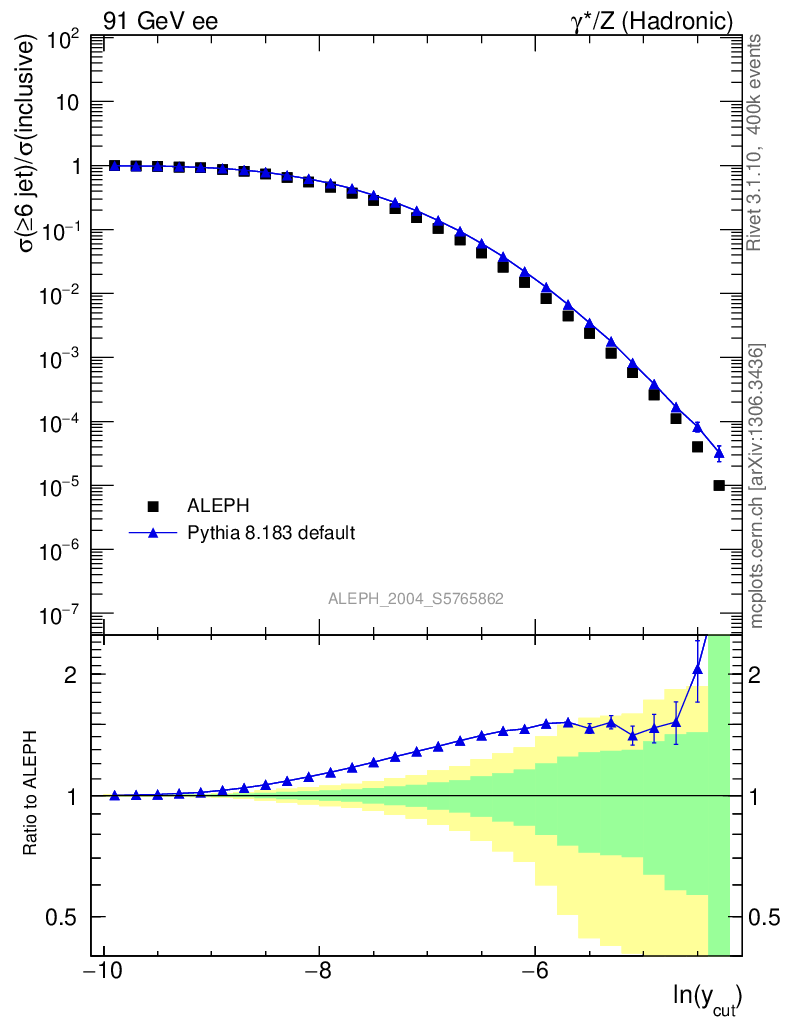 ee : γ*/Z (hadronic) : Jet rates : >Six-jet fraction