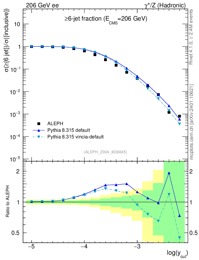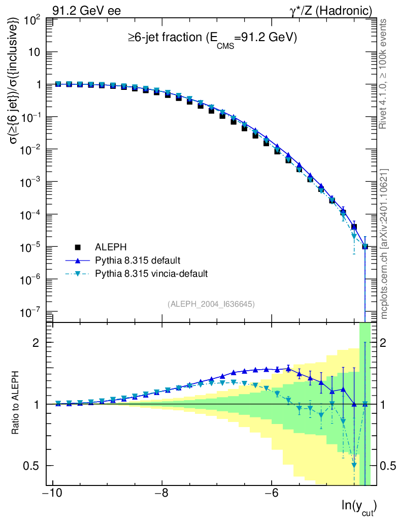 ee : γ*/Z (hadronic) : Jet rates : >Six-jet fraction
