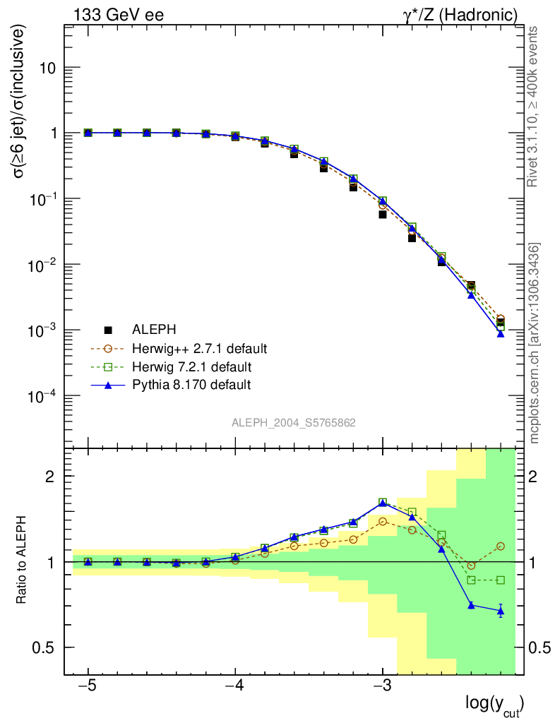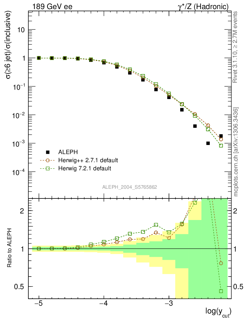 ee : γ*/Z (hadronic) : Jet rates : >Six-jet fraction