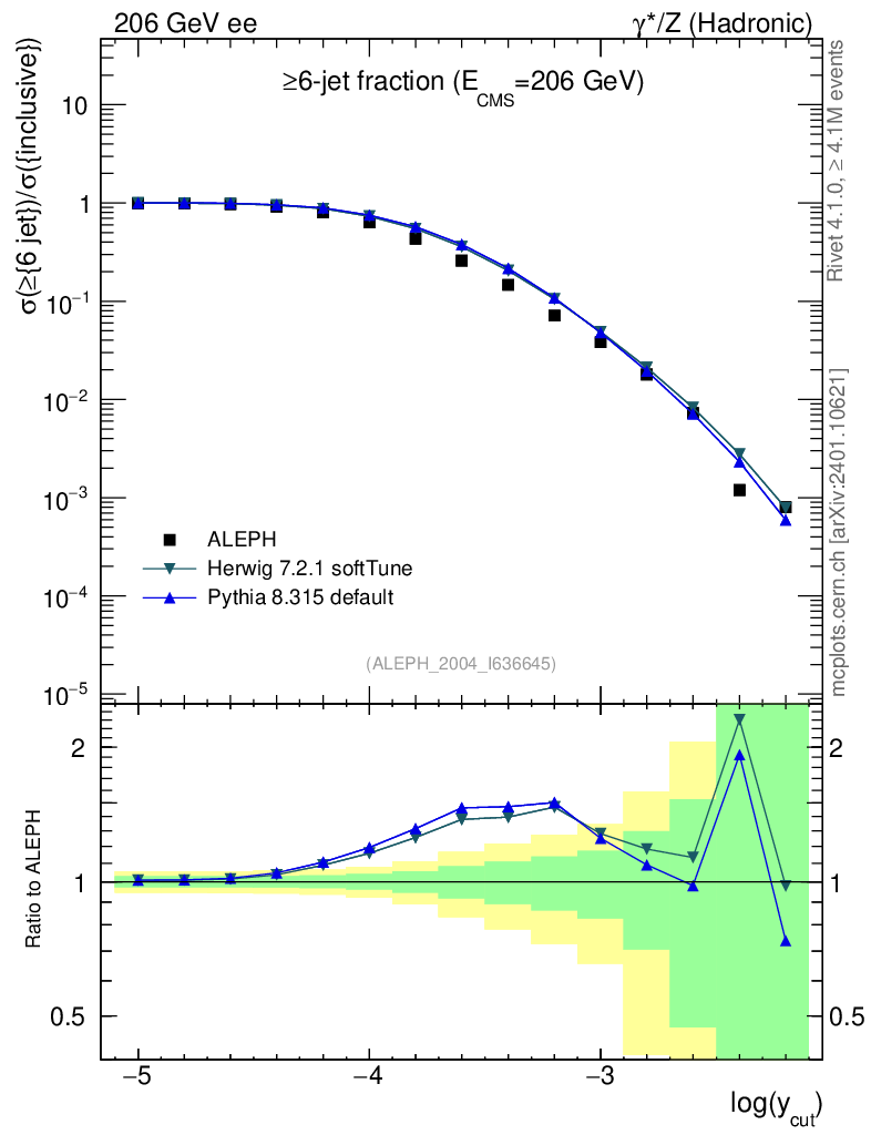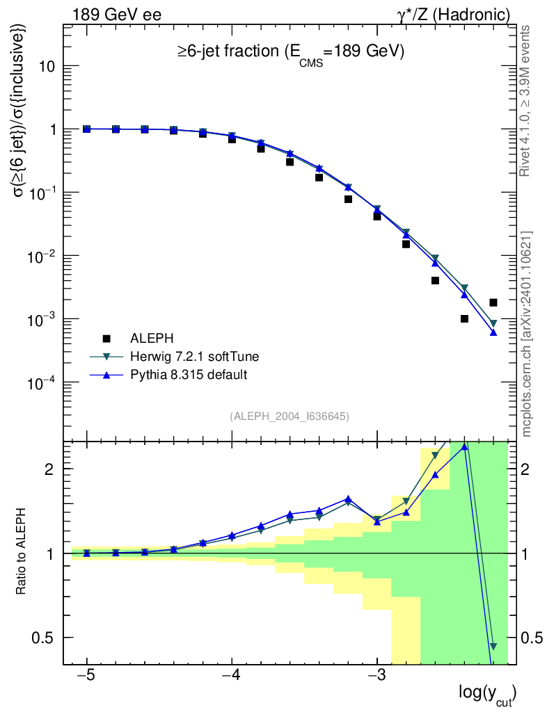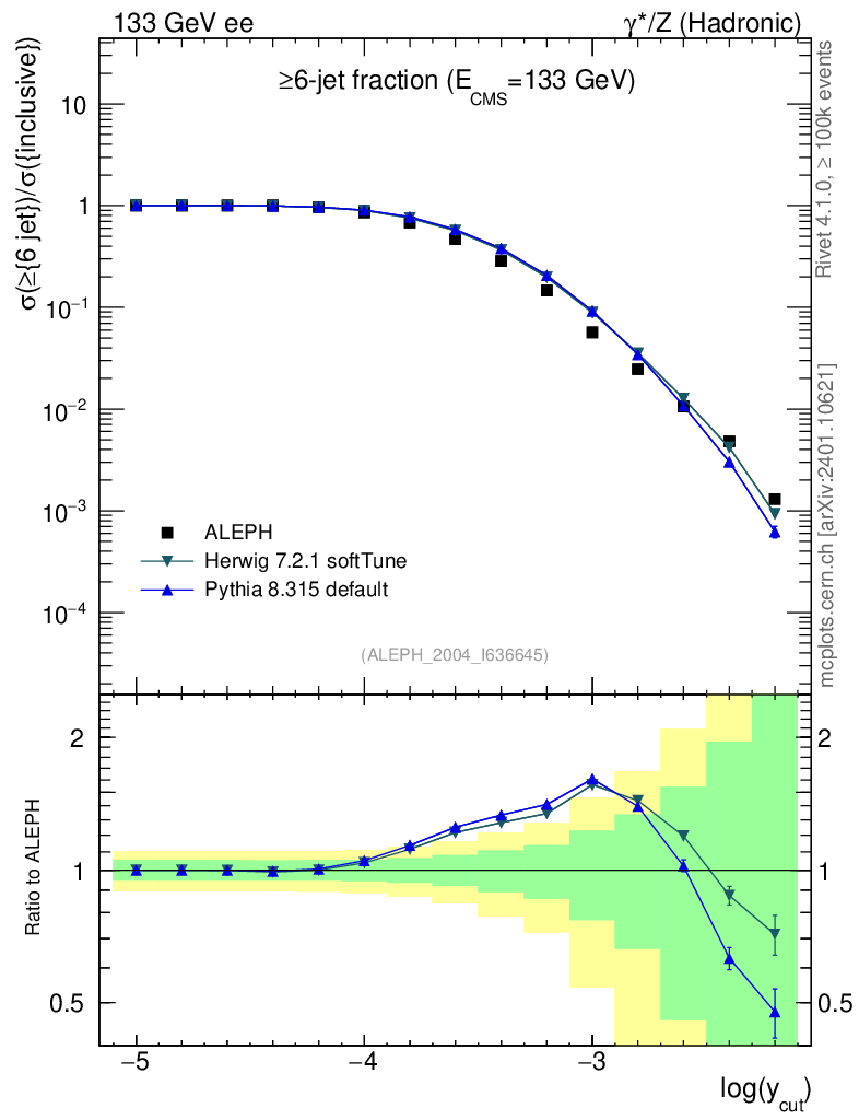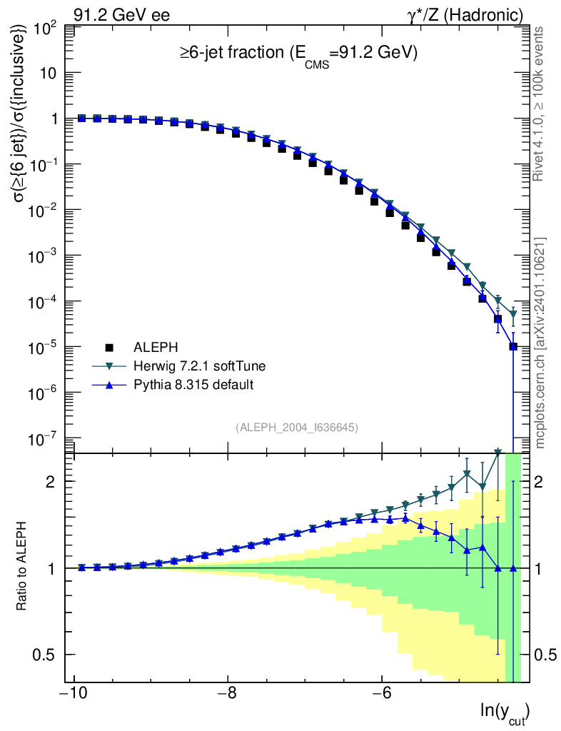 ee : γ*/Z (hadronic) : Jet rates : >Six-jet fraction