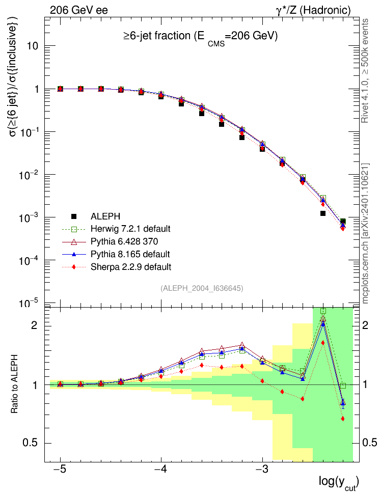 ee : γ*/Z (hadronic) : Jet rates : >Six-jet fraction
