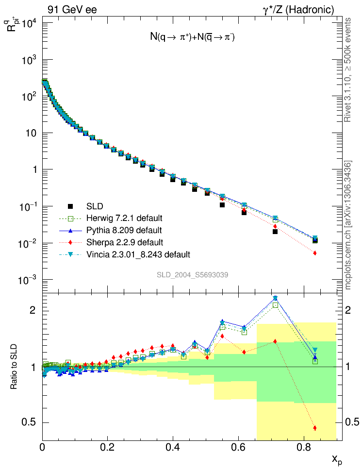 ee : γ*/Z (hadronic) : Identified Particles : N(q→π