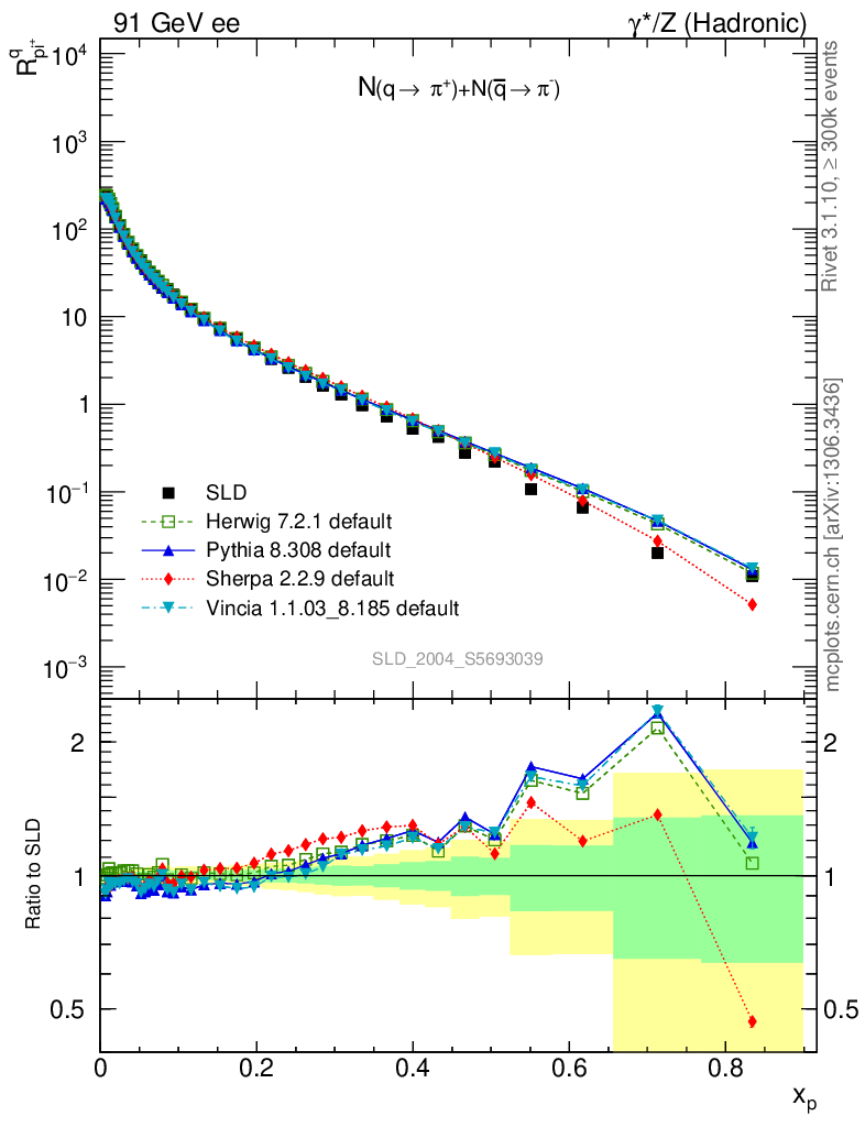 ee : γ*/Z (hadronic) : Identified Particles : N(q→π