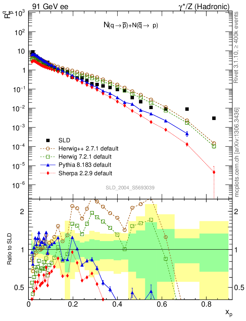 ee : γ*/Z (hadronic) : Identified Particles : N(q→p̄)+N(q̄→p)