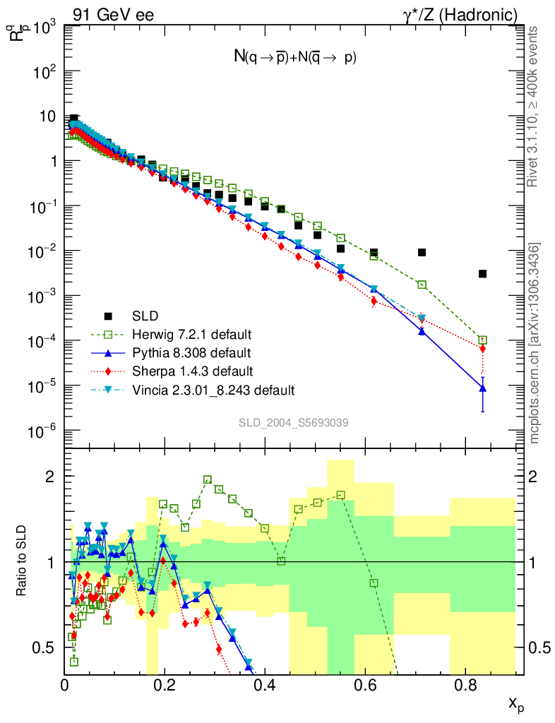 ee : γ*/Z (hadronic) : Identified Particles : N(q→p̄)+N(q̄→p)