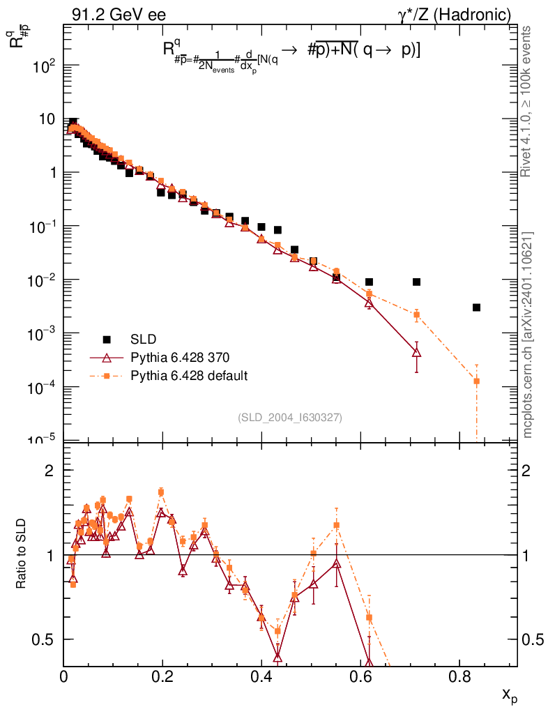 ee : γ*/Z (hadronic) : Identified Particles : N(q→p̄)+N(q̄→p)