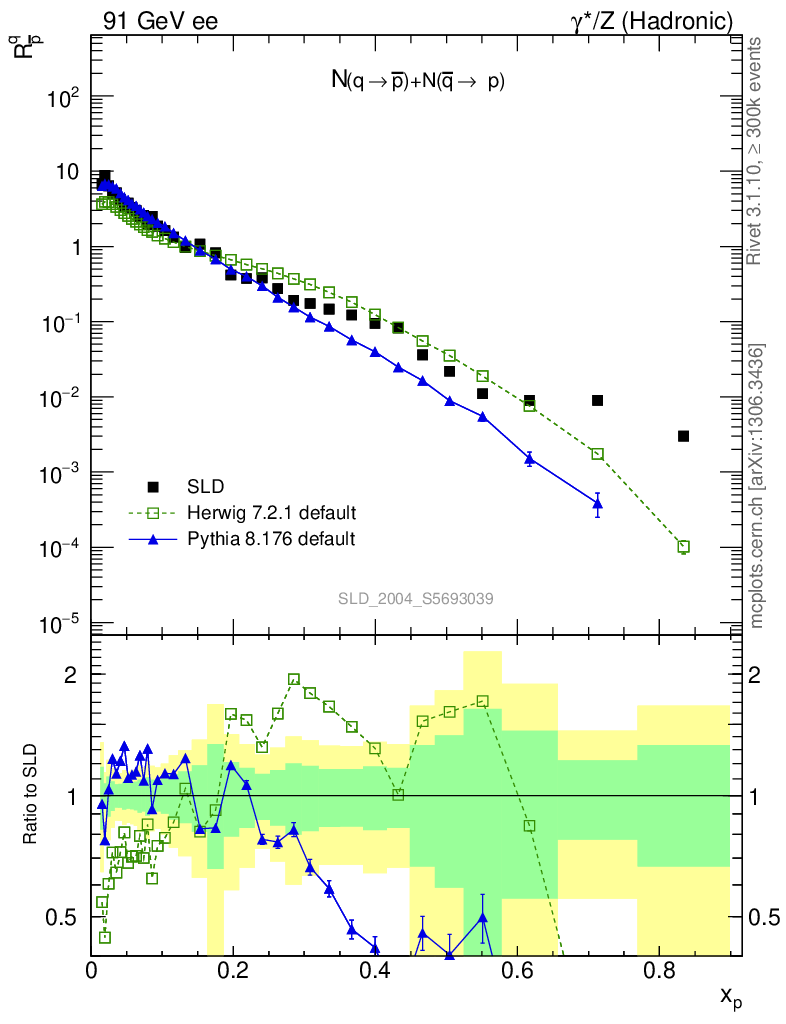 ee : γ*/Z (hadronic) : Identified Particles : N(q→p̄)+N(q̄→p)