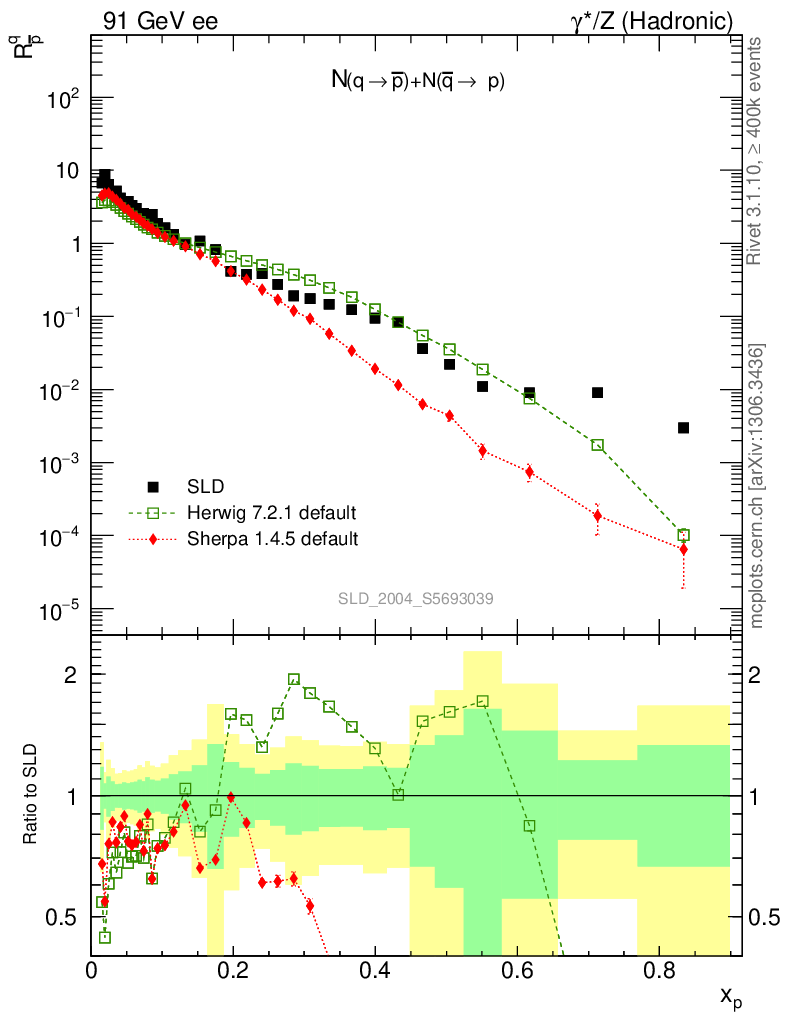 ee : γ*/Z (hadronic) : Identified Particles : N(q→p̄)+N(q̄→p)