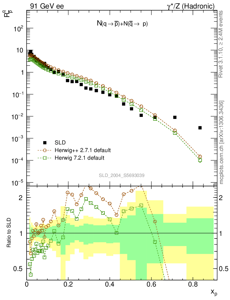 ee : γ*/Z (hadronic) : Identified Particles : N(q→p̄)+N(q̄→p)