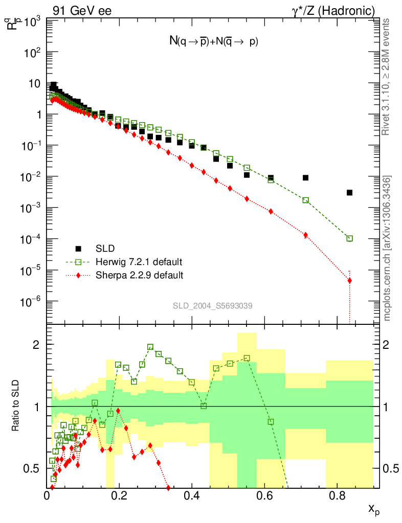 ee : γ*/Z (hadronic) : Identified Particles : N(q→p̄)+N(q̄→p)