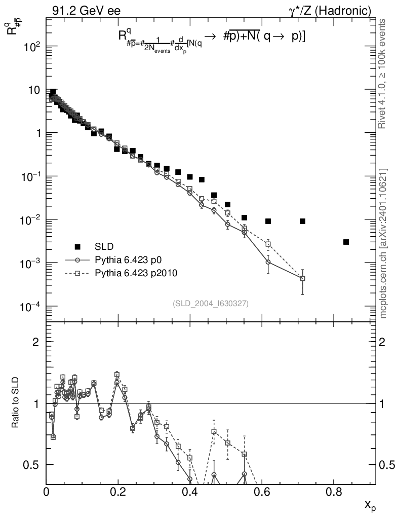 ee : γ*/Z (hadronic) : Identified Particles : N(q→p̄)+N(q̄→p)