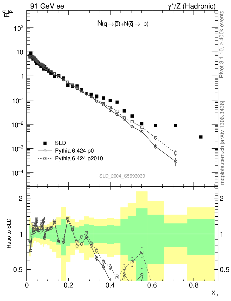 ee : γ*/Z (hadronic) : Identified Particles : N(q→p̄)+N(q̄→p)