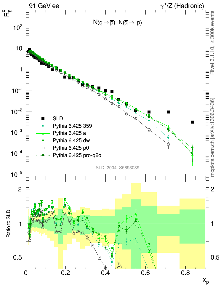 ee : γ*/Z (hadronic) : Identified Particles : N(q→p̄)+N(q̄→p)