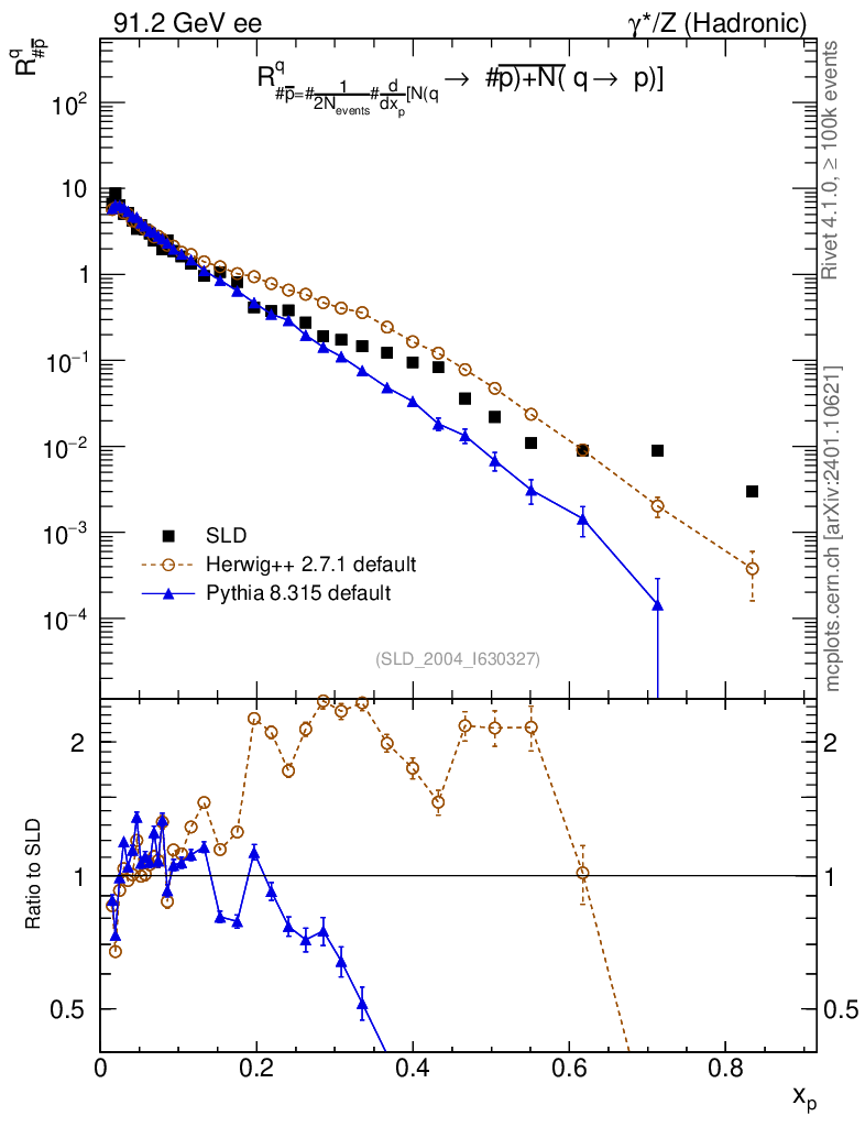 ee : γ*/Z (hadronic) : Identified Particles : N(q→p̄)+N(q̄→p)