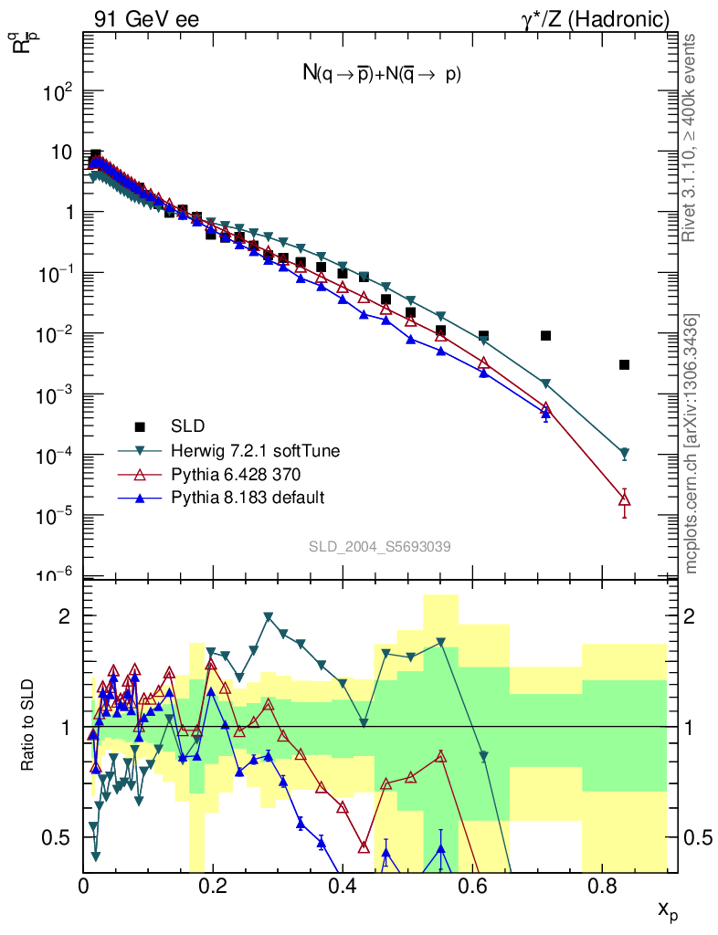 ee : γ*/Z (hadronic) : Identified Particles : N(q→p̄)+N(q̄→p)