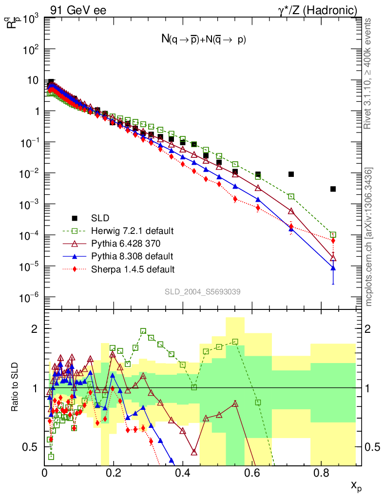 ee : γ*/Z (hadronic) : Identified Particles : N(q→p̄)+N(q̄→p)