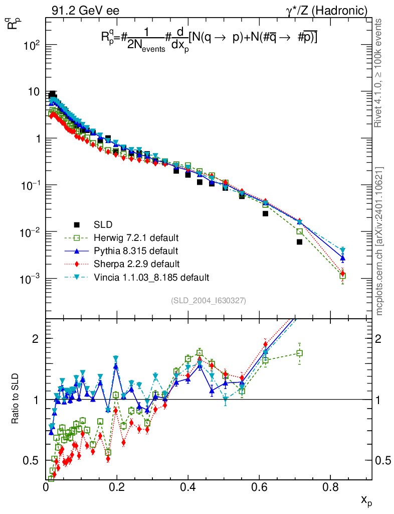 ee : γ*/Z (hadronic) : Identified Particles : N(q→p)+N(q̄→p̄)