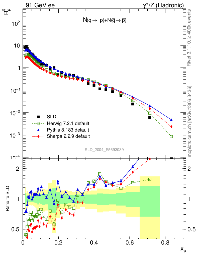 ee : γ*/Z (hadronic) : Identified Particles : N(q→p)+N(q̄→p̄)