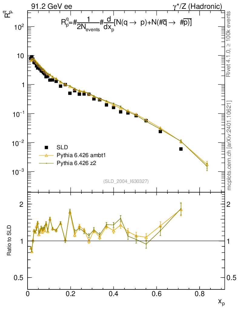 ee : γ*/Z (hadronic) : Identified Particles : N(q→p)+N(q̄→p̄)