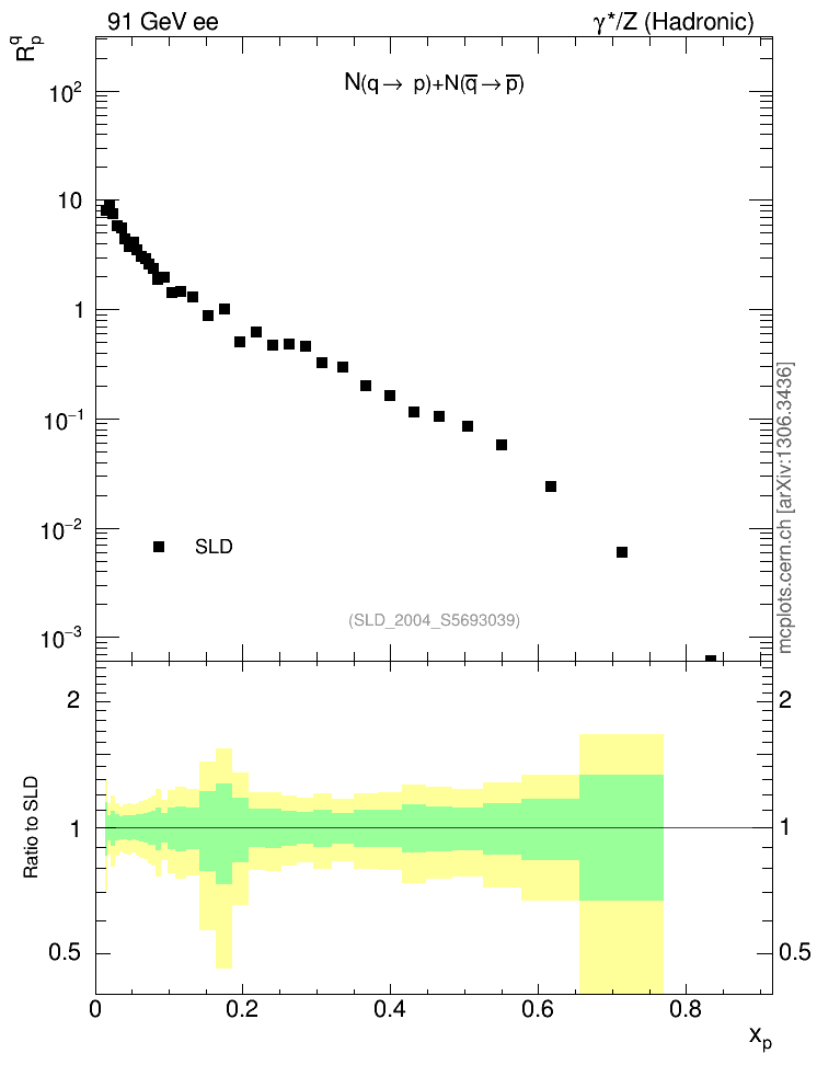 ee : γ*/Z (hadronic) : Identified Particles : N(q→p)+N(q̄→p̄)