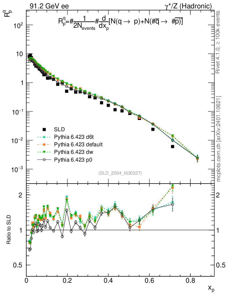 ee : γ*/Z (hadronic) : Identified Particles : N(q→p)+N(q̄→p̄)