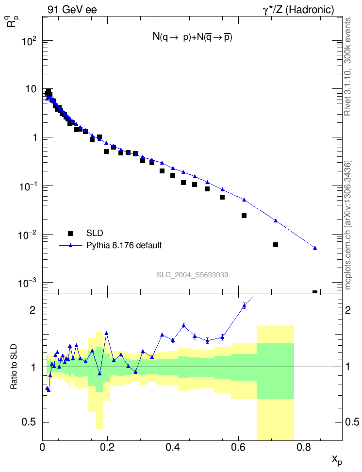 ee : γ*/Z (hadronic) : Identified Particles : N(q→p)+N(q̄→p̄)