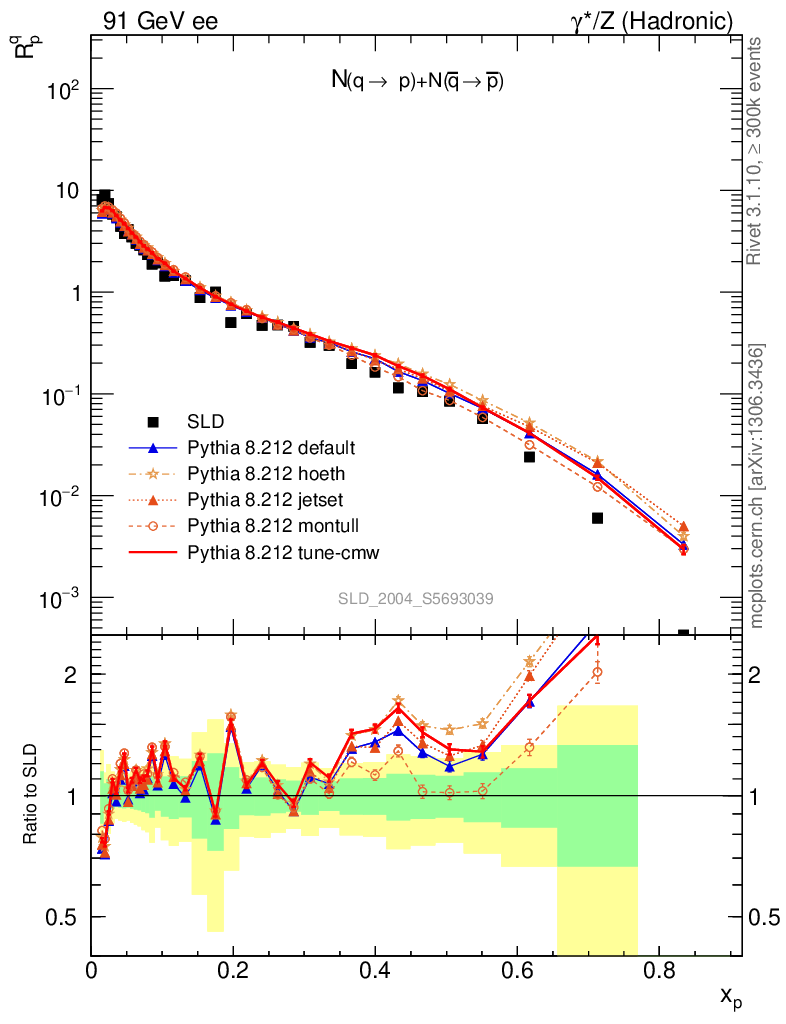 ee : γ*/Z (hadronic) : Identified Particles : N(q→p)+N(q̄→p̄)