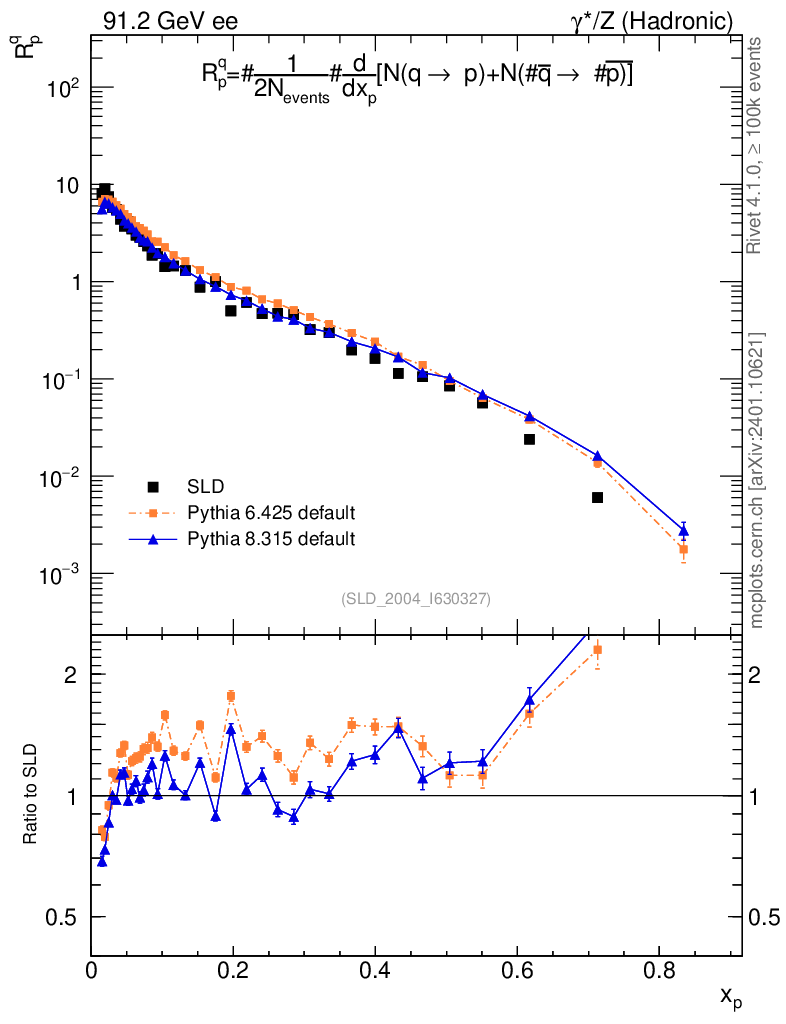 ee : γ*/Z (hadronic) : Identified Particles : N(q→p)+N(q̄→p̄)