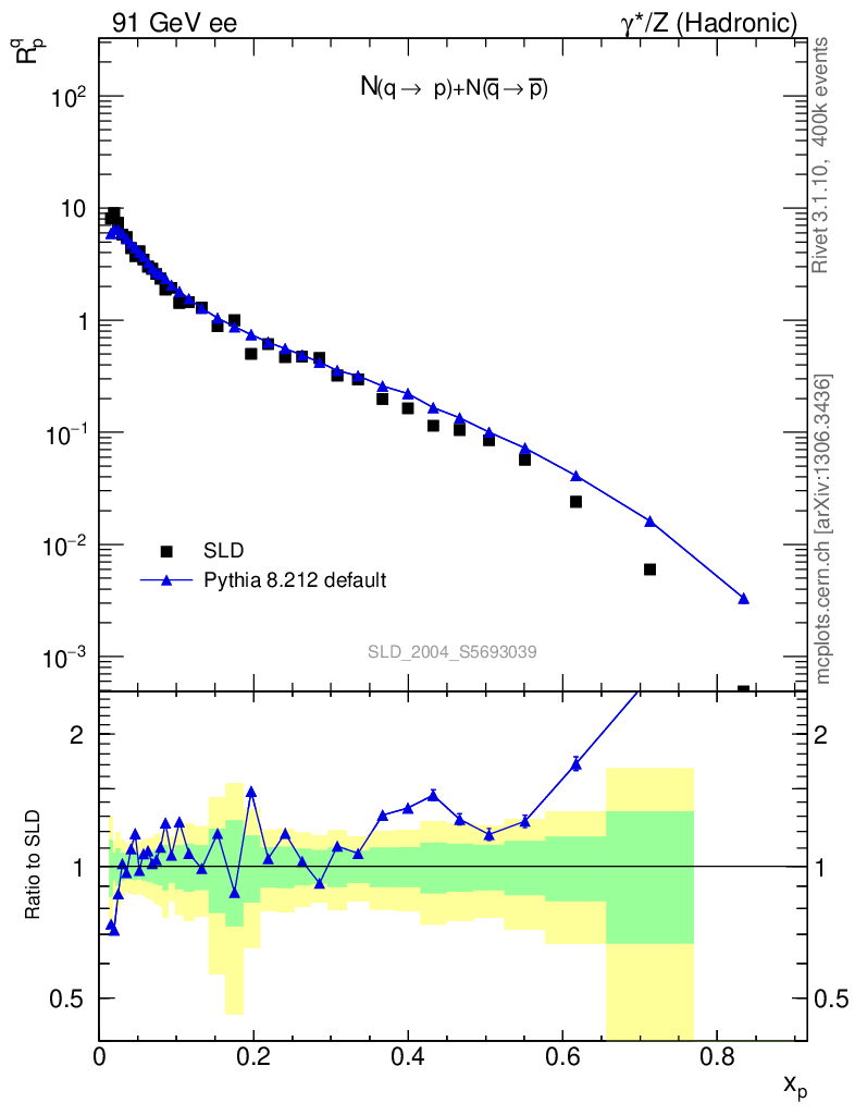 ee : γ*/Z (hadronic) : Identified Particles : N(q→p)+N(q̄→p̄)