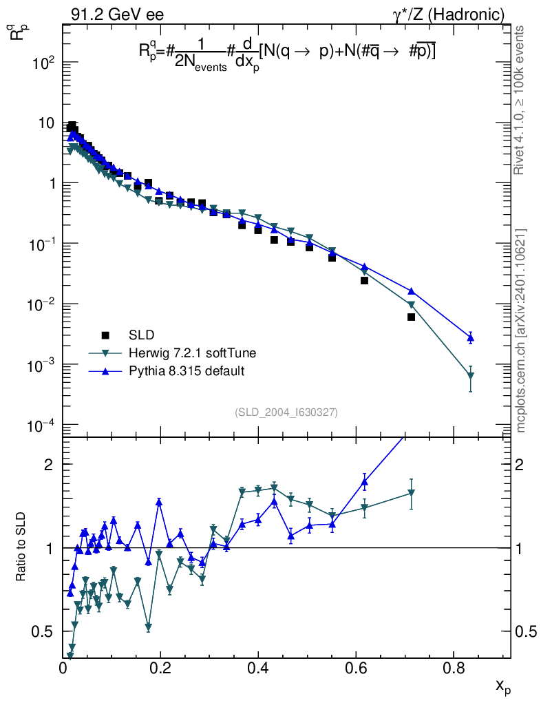 ee : γ*/Z (hadronic) : Identified Particles : N(q→p)+N(q̄→p̄)