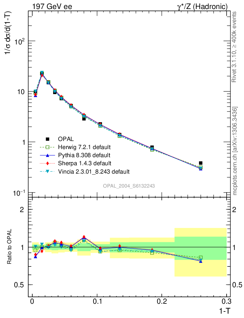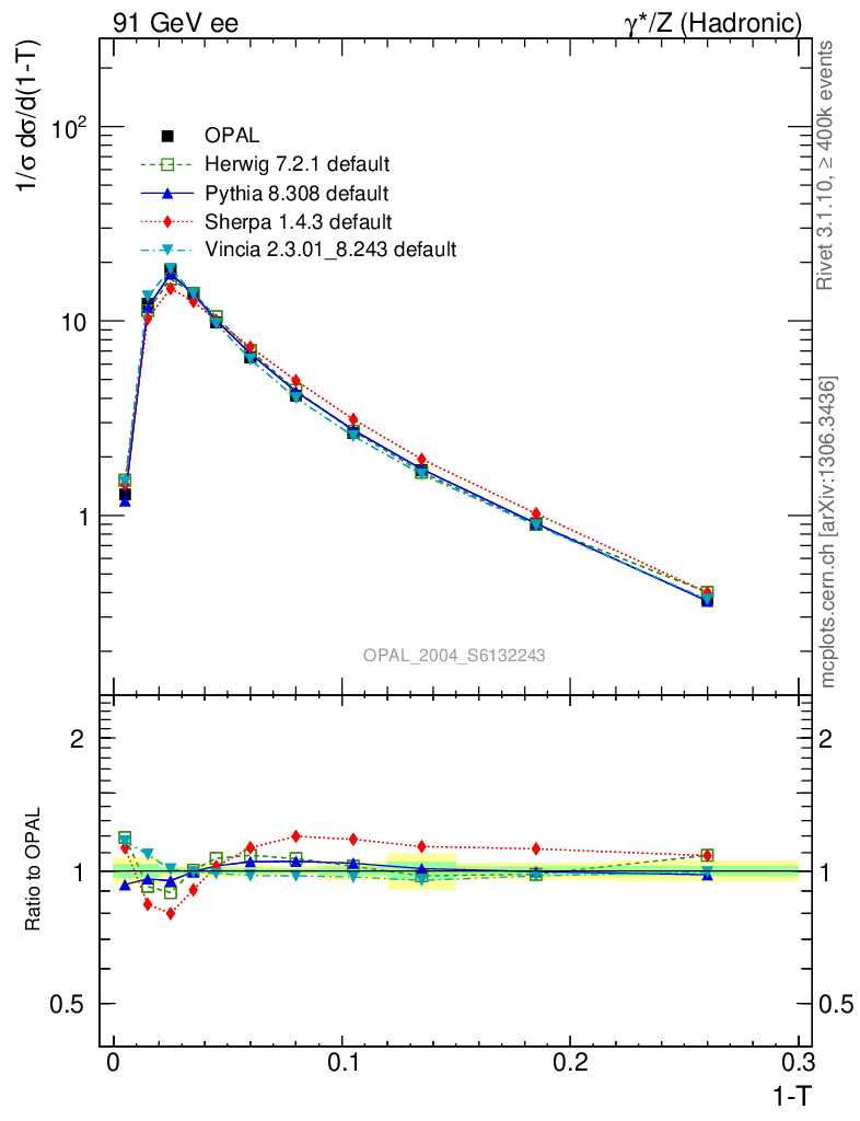 ee : γ*/Z (hadronic) : 1-Thrust