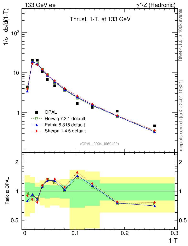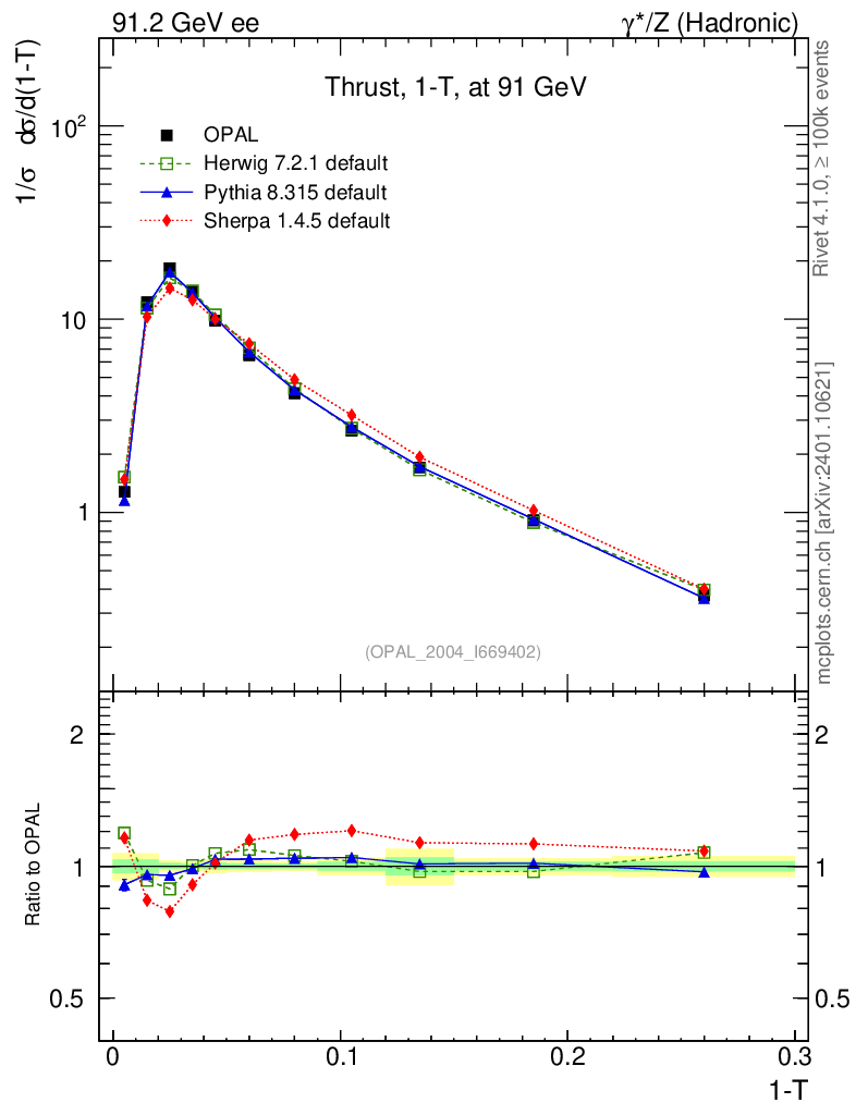 ee : γ*/Z (hadronic) : 1-Thrust