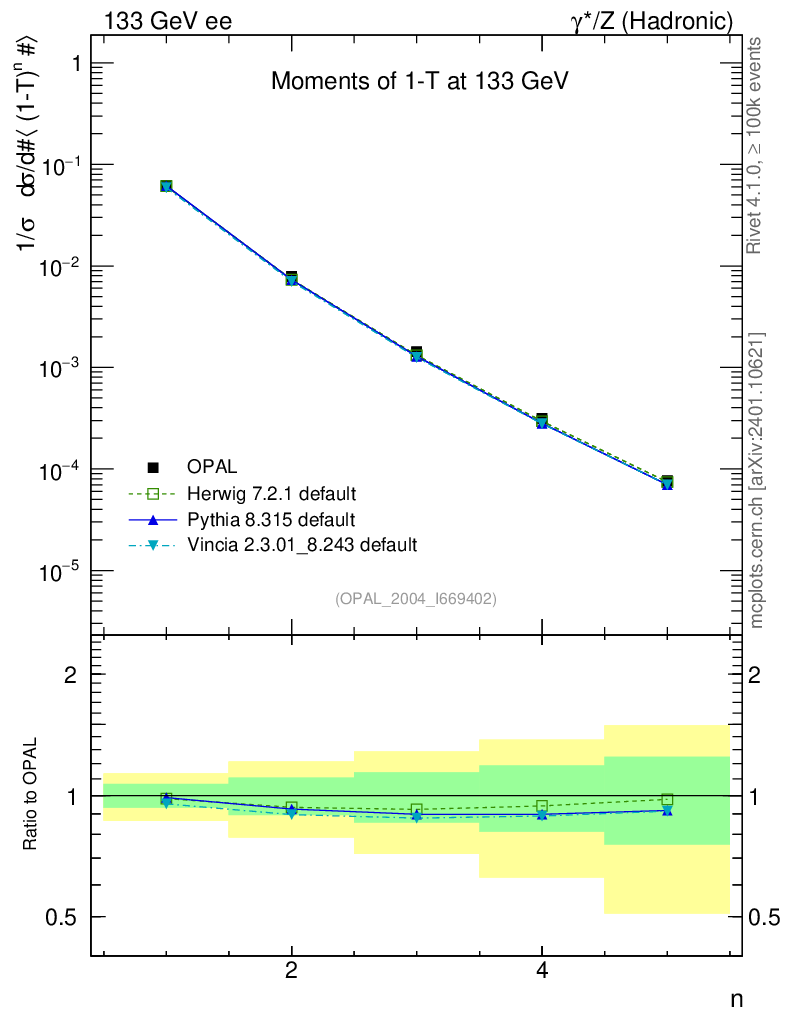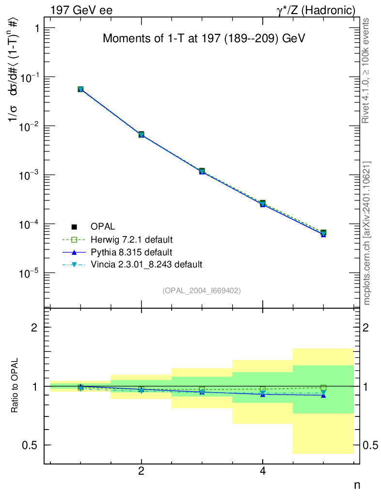 ee : γ*/Z (hadronic) : Event-Shape Moments : Moments of 1-T
