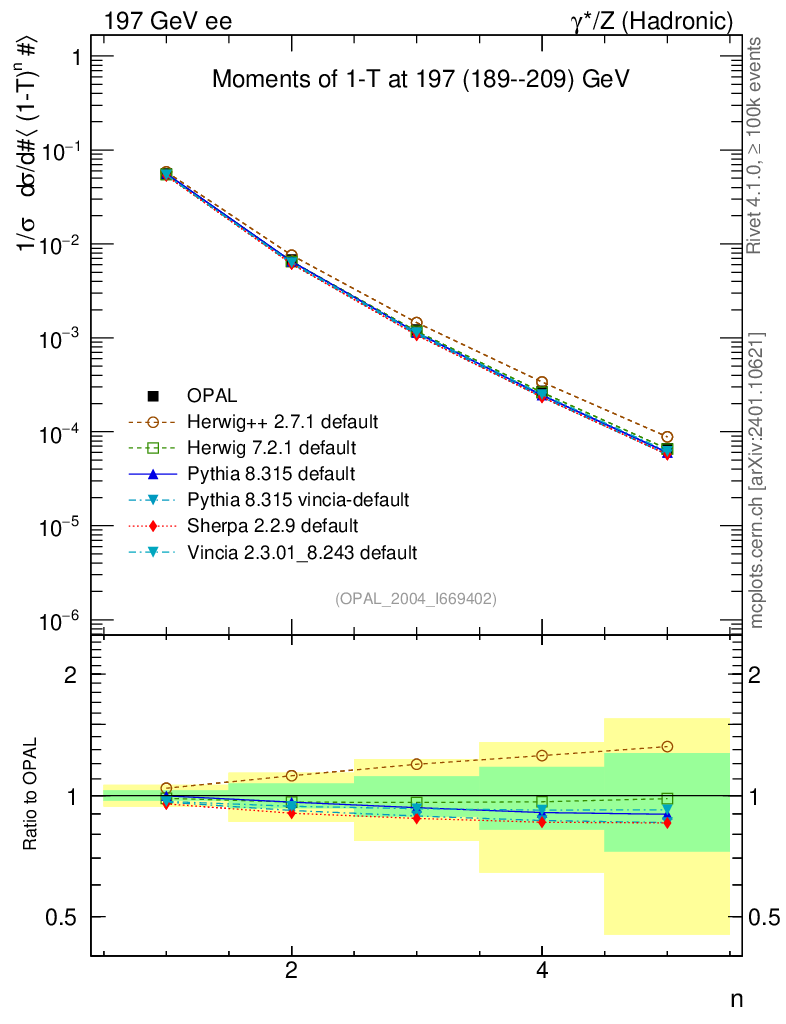 ee : γ*/Z (hadronic) : Event-Shape Moments : Moments of 1-T