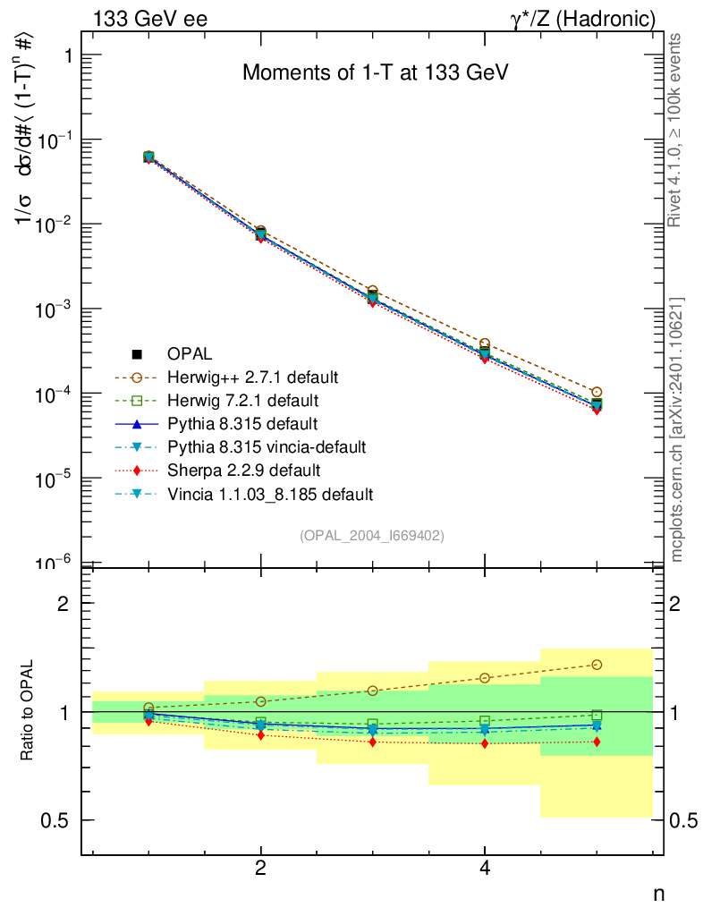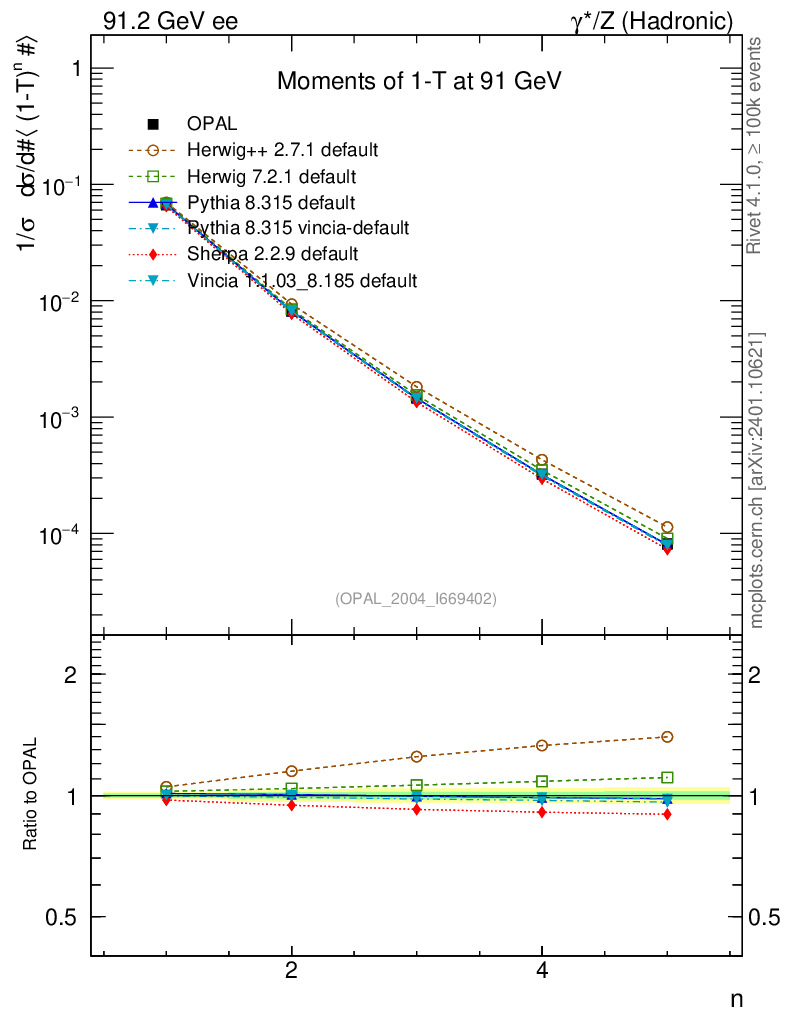 ee : γ*/Z (hadronic) : Event-Shape Moments : Moments of 1-T