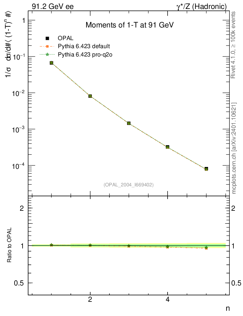 ee : γ*/Z (hadronic) : Event-Shape Moments : Moments of 1-T