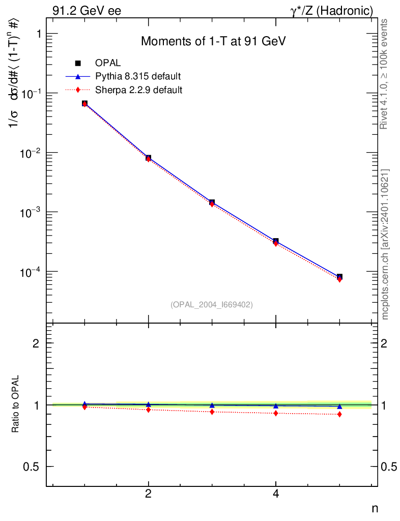ee : γ*/Z (hadronic) : Event-Shape Moments : Moments of 1-T