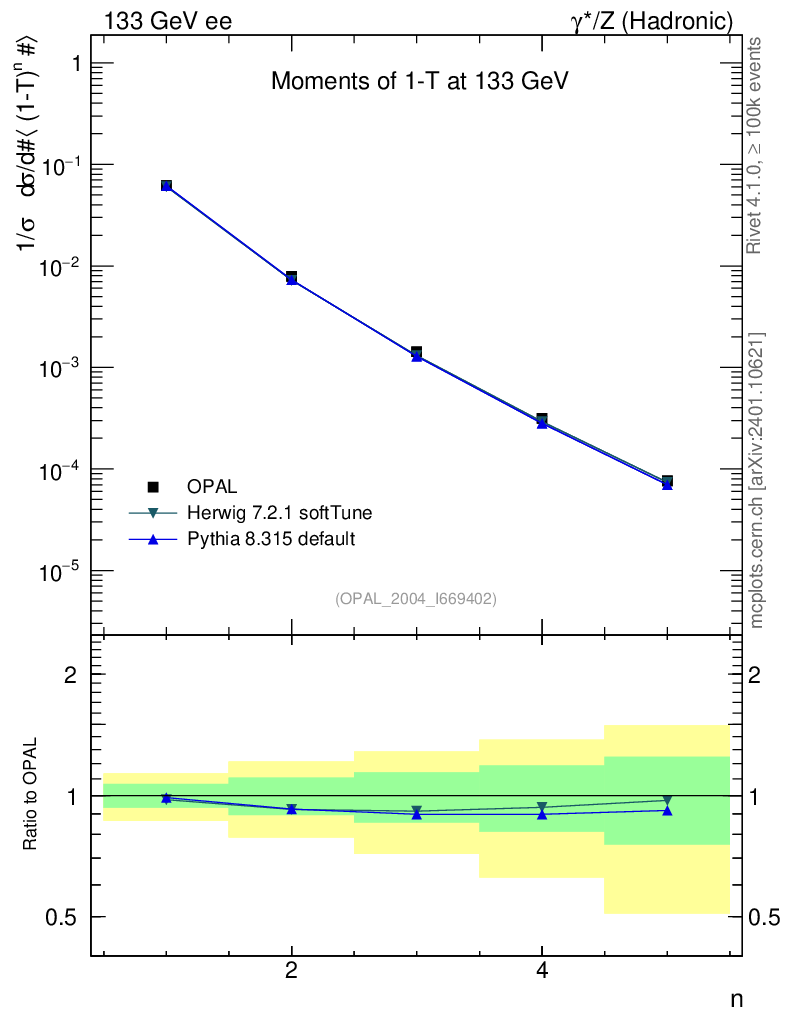 ee : γ*/Z (hadronic) : Event-Shape Moments : Moments of 1-T