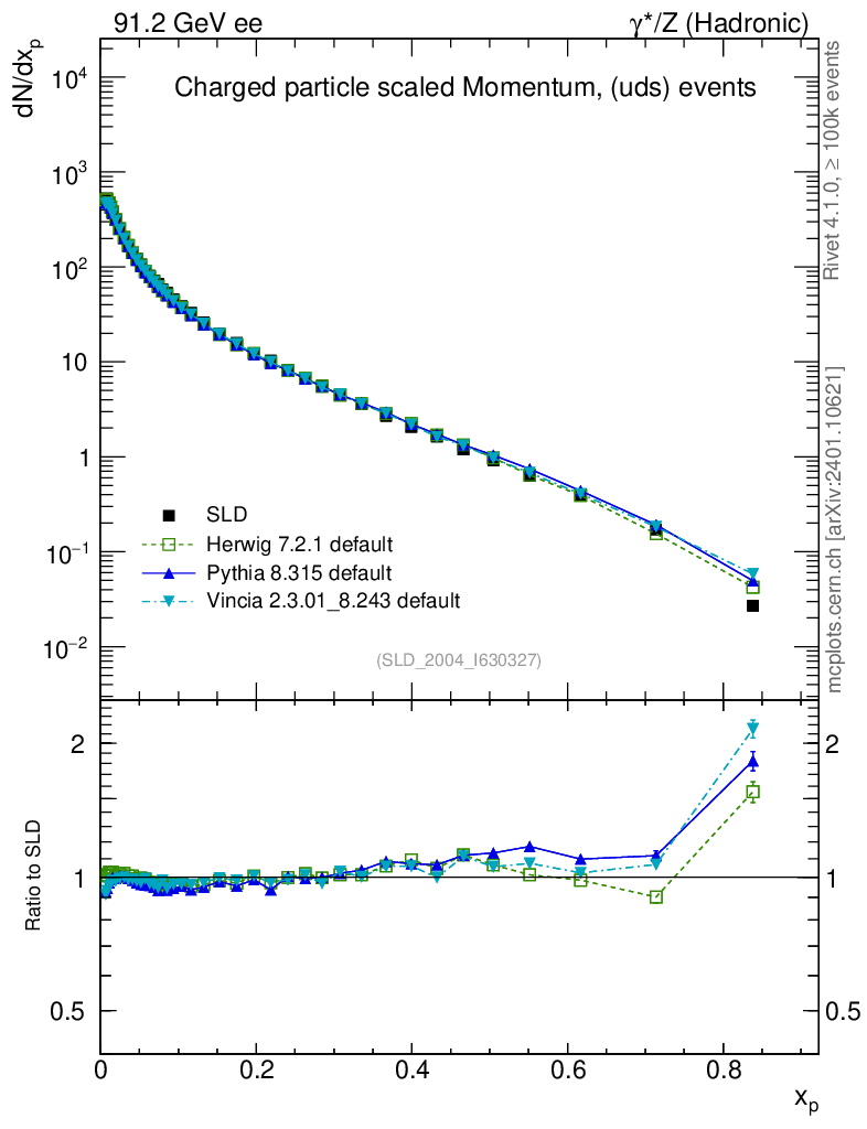 ee : γ*/Z (hadronic) : Charged Particles : x