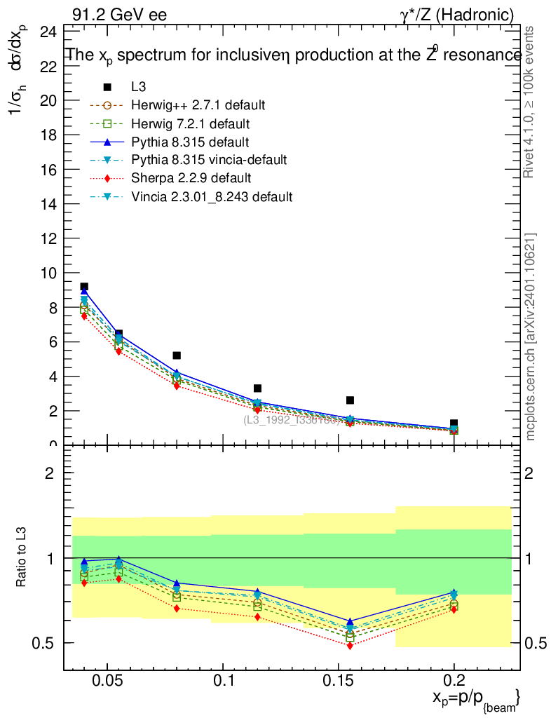 ee : γ*/Z (hadronic) : Identified Particles : η spectrum