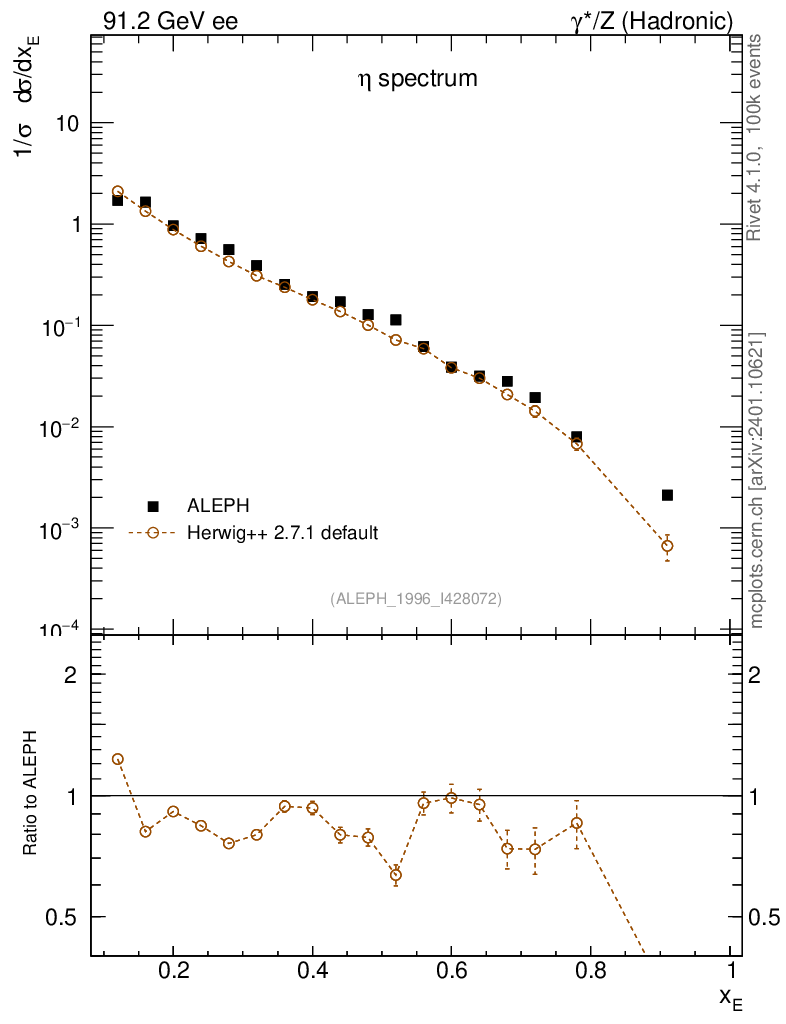 ee : γ*/Z (hadronic) : Identified Particles : η spectrum