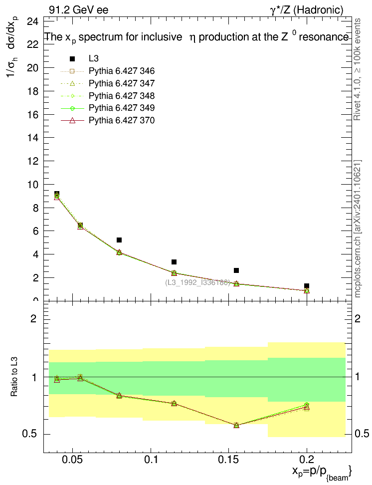 ee : γ*/Z (hadronic) : Identified Particles : η spectrum