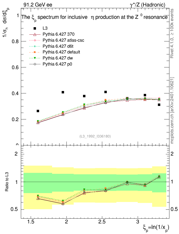 ee : γ*/Z (hadronic) : Identified Particles : η spectrum