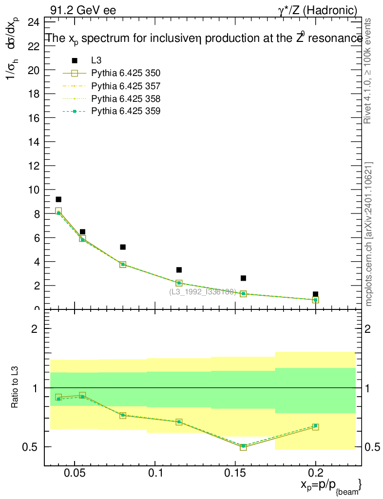 ee : γ*/Z (hadronic) : Identified Particles : η spectrum